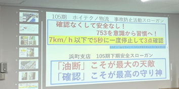 浜町支店全員で事故防止活動のスローガン唱和を行いました。