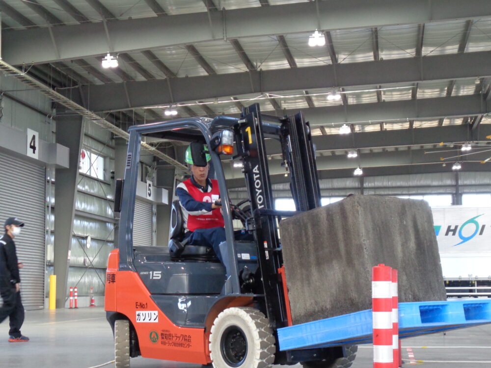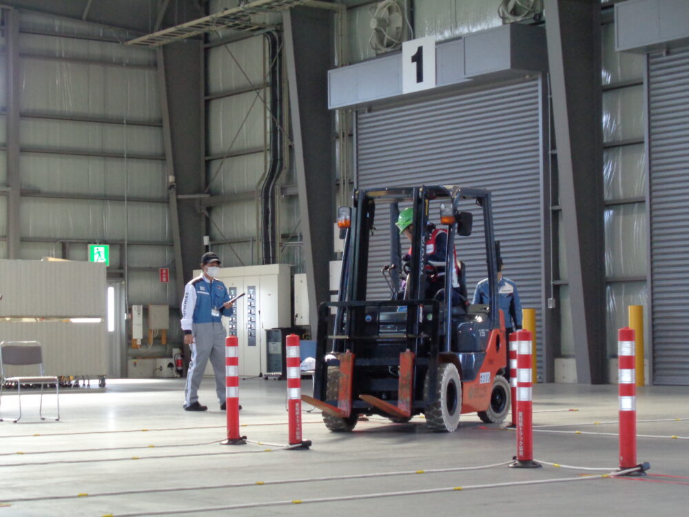 トラック部門・フォークリフト部門に分かれ、筆記試験と実技競技を実施。