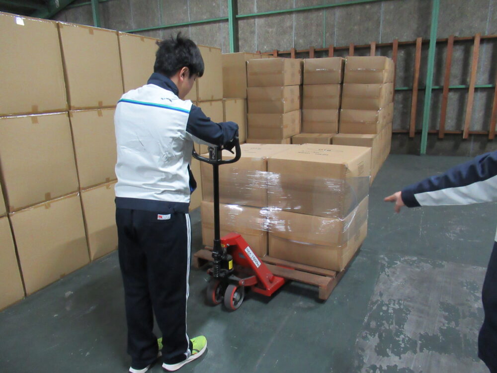 ハンドリフト操作や出荷準備作業、梱包作業やラップ巻きなど