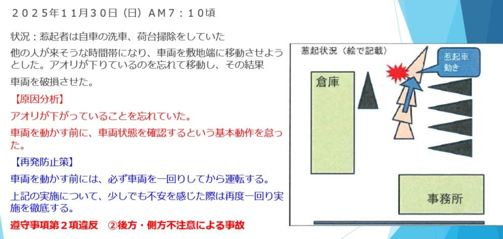 11月に発生した車両接触事故内容をスライドで共有
