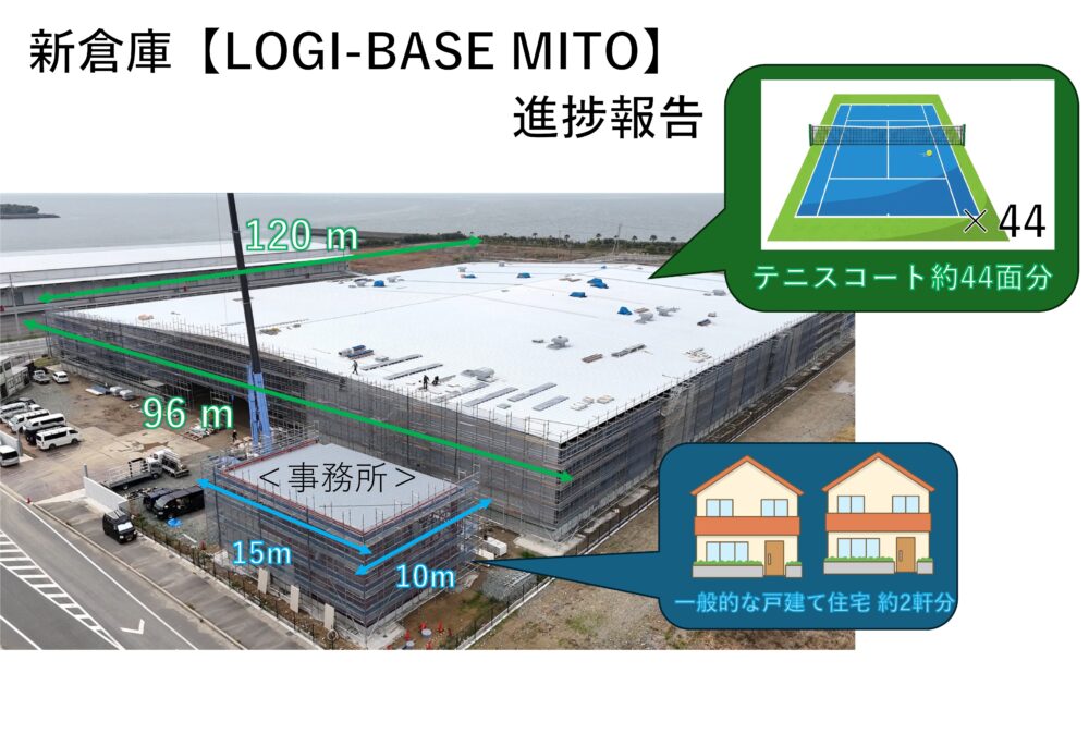 12月に新倉庫「LOGI-BASE MITO」の基礎工事が終了した旨をお伝えしましたがあれから、約……